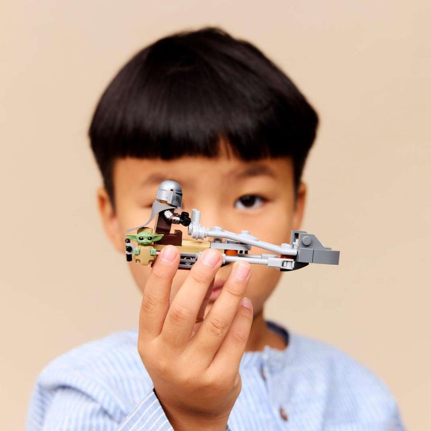 Hop on the speeder bike and zoom across Tatooine with The Mandalorian and Grogu! This fun LEGO set (75436) builds fast so playtime starts right away. Seat Din Djarin in the driver's spot, tuck Grogu into the satchel, and clip on the blaster rifle for epic adventures. The Mandalorian's blaster even transforms from pistol to rifle. With 58 pieces and the helpful LEGO Builder app to guide you, this is the perfect gift for any Star Wars fan ready for action-packed fun.