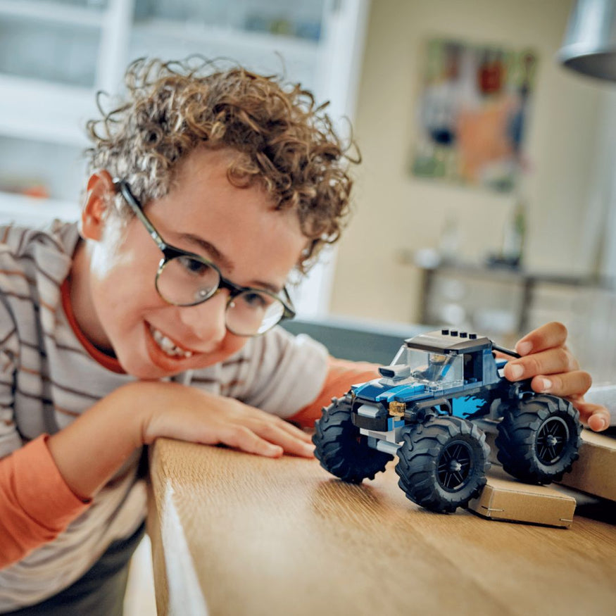 Get ready to rumble! The LEGO City Blue Monster Truck (60402) is packed with huge rubber tires and a tough frame built for wild jumps and crazy stunts. Includes a driver minifigure for endless imaginative play. Build it with picture guides or the LEGO Builder app—see your creation come alive in 3D as you go. Perfect for kids 5+. Combine with other LEGO City sets for even more adventures.