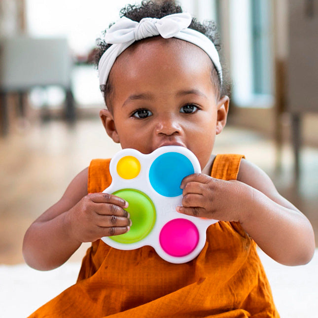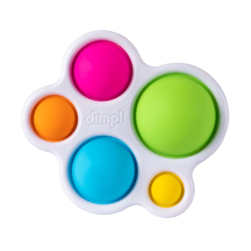 Little fingers can't resist these colorful bubbles! Dimpl features five vibrant silicone bubbles in varying sizes just begging to be poked, pushed, and popped. Watch as each bubble satisfyingly clicks through to the other side—it's weirdly addictive and impossible to put down. Perfect for keeping tiny hands entertained during car rides, doctor's visits, or whenever you need a moment of peace. Built from sturdy ABS plastic with 100% food-grade silicone bubbles that are hand washable and totally safe. Compact enough to toss in your bag and bring the fun anywhere.