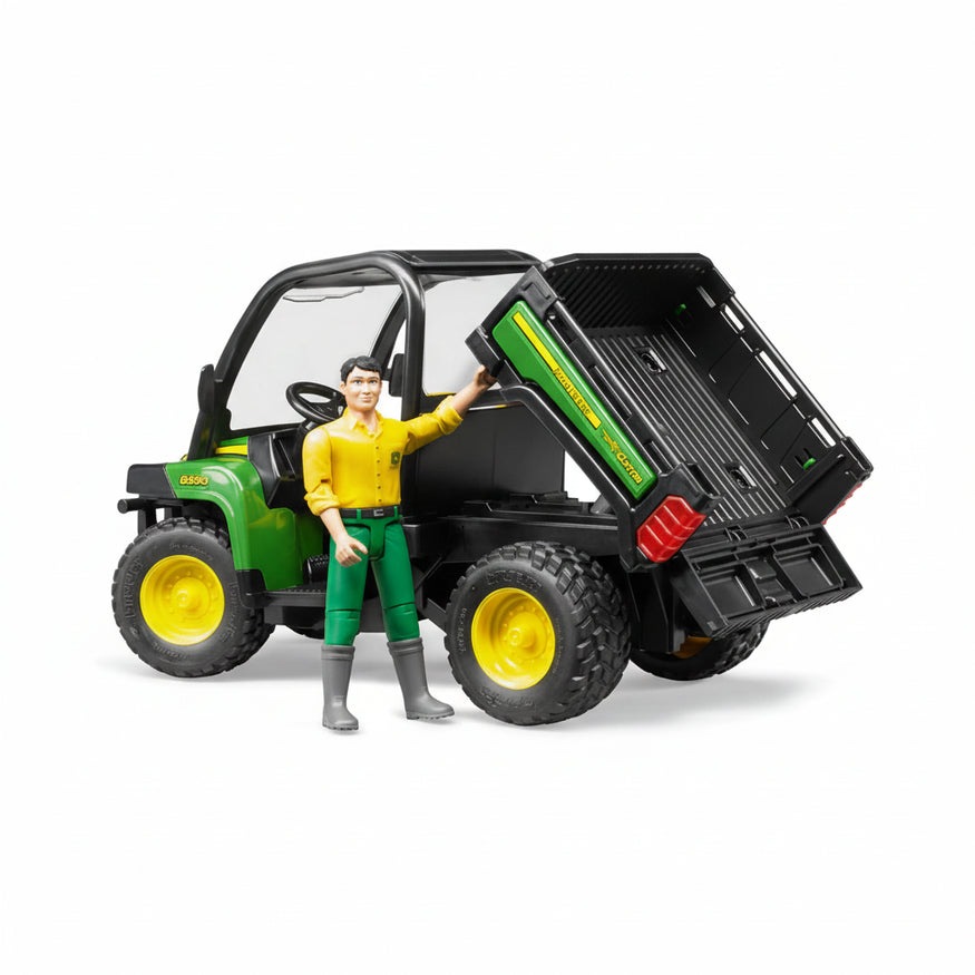 Meet the ultimate farm companion—a 1:16 scale John Deere Gator XUV 855D built for serious playtime. This tough little machine features a working rear trailer hitch, flip-open tailgate, and tilting cargo bed just like the real thing. Pop the included John Deere driver figurine into the cab and you're ready for endless backyard missions. Durable construction means it can handle whatever adventure comes next. Perfect for kids who love big machines and bigger imaginations.