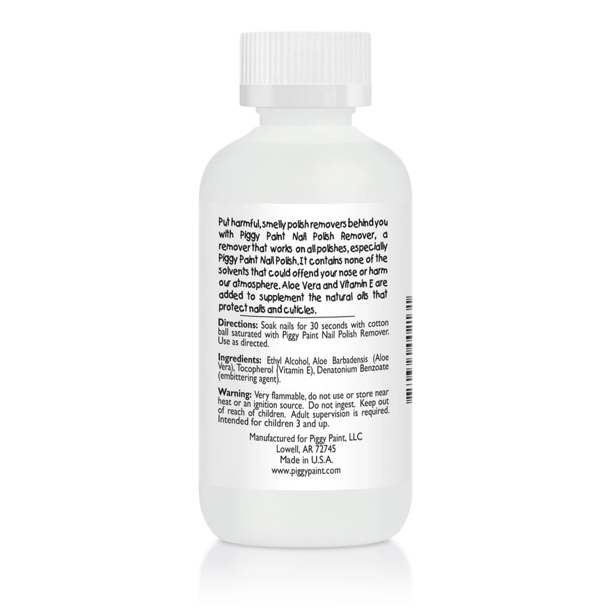 Warning: Because Piggy Paint Nail Polish Remover is flammable when heated, do not use or store near heat or an ignition source. Do not ingest.  Keep out of reach of children, and always have an adult supervising while using this product.