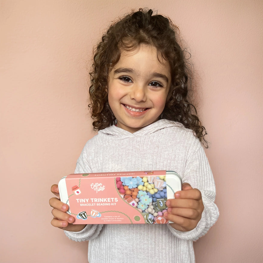 Design your own collection of five delightful bracelets with this charming beading kit! String together whimsical beads shaped like flowers, teacups, bows, and diaries using the included elastic cord. Perfect for young crafters who adore sparkly creations and imaginative play. When you're done designing, the sturdy tin becomes your personal treasure box—ideal for stashing extra beads, shimmering gems, and all your most cherished keepsakes. Get ready for endless colorful creativity!